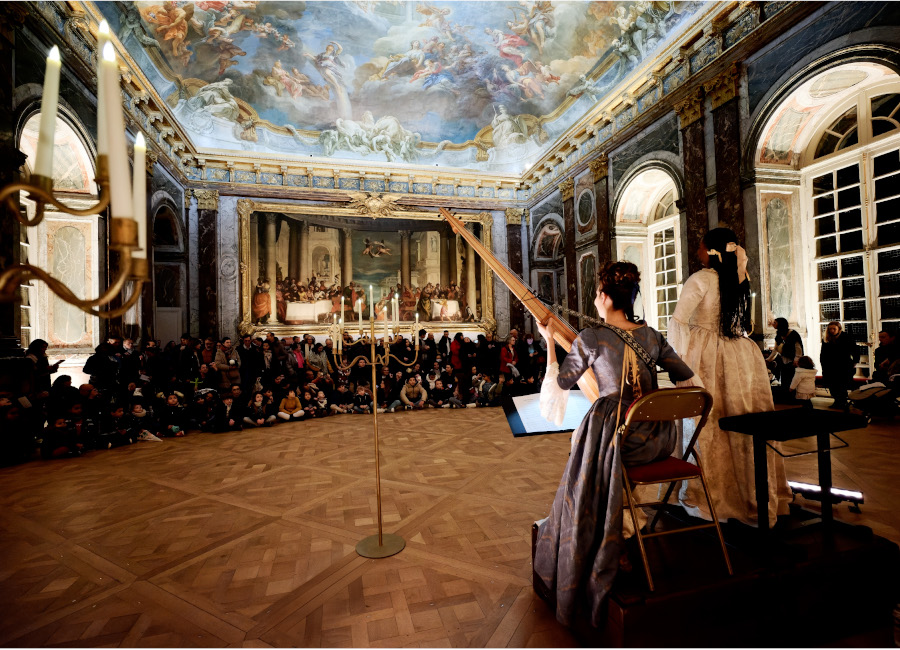 Du Salon d'Hercule à la Chambre de la Reine en passant par la Galerie des Glaces illuminée de feux d'artifice royaux, des musiciens, danseurs, chanteurs, escrimeurs et comédiens se préparent à vous accueillir sous les ors des Grands Appartements pour une visite-spectacle hors du commun vous menant jusqu'à la Galerie des Batailles, où vous irez à la rencontre d'un invité très spécial... le Père Noël baroque !