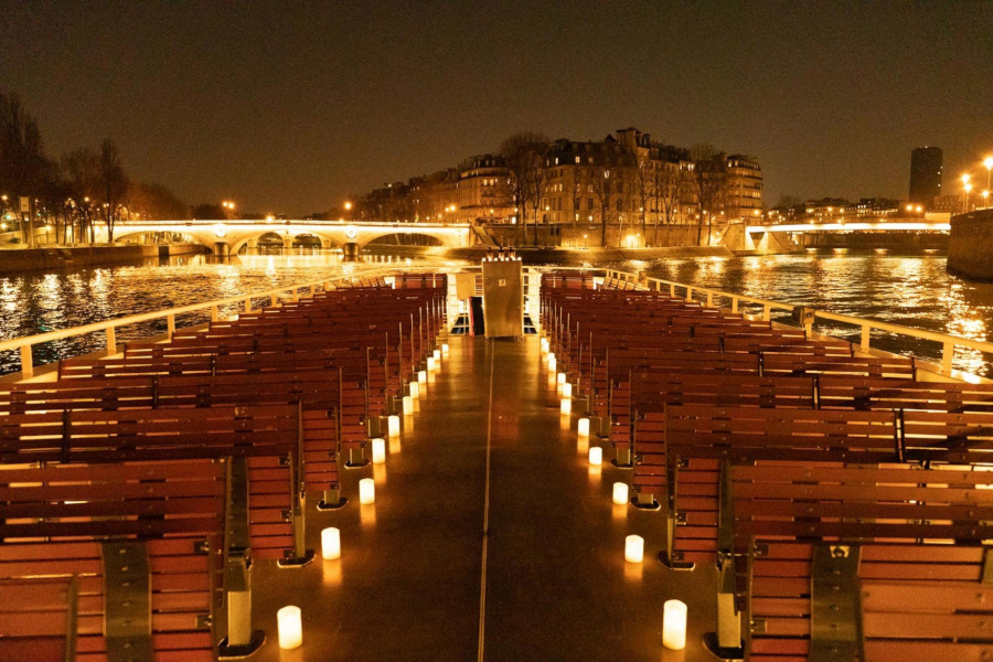 Pendant une heure, laissez-vous séduire par la beauté de Paris à bord de notre bateau, conçu pour vous offrir une expérience intime et confortable grâce à un nombre de passagers limité. Profitez d'un moment de calme et de sérénité en naviguant sur la Seine, tout en admirant les plus beaux monuments de la capitale illuminés pour la soirée.
