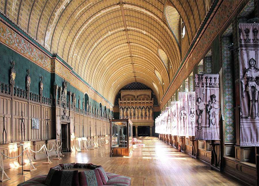 Un castillo reinventado. Construido a finales del siglo XIV por el duque Luis de Orleans, el castillo fue desmantelado en el siglo XVII y se encontraba en estado de ruina cuando Napoleón III decidió encargar su reconstrucción al arquitecto Eugène Viollet-le-Duc, que puso en práctica sus conceptos arquitectónicos para convertirlo en un castillo ideal tal y como habría existido en la Edad Media.